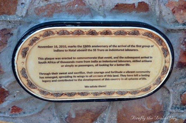 I was taking a couple of pictures on the Donkin Reserve the other day and noticed this plaque on the stone wall by the Great Flag. I don’t know if it is a recent addition or if I’ve just never noticed it. Weird, but anyways. The plaque marks the 150th anniversary (as on 16 November 2010) of the arrival of the first group of Indians to South Africa as indentured labourers. Although the arrival was in Natal and not Port Elizabeth, the plaque was probably put up by the Port Elizabeth Indian community. Worth a bit further investigation me thinks…