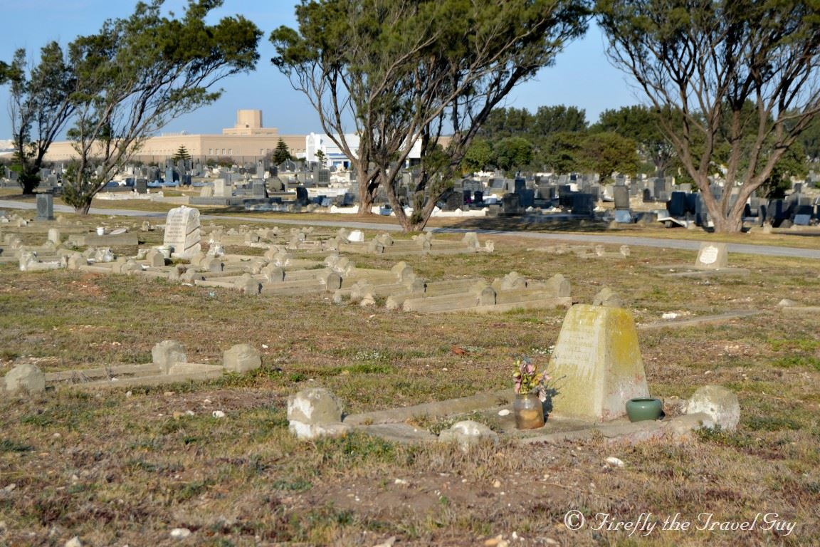 I found the following about the history of the cemetery. With the exception of the individually walled and accessed Jewish and Muslim sections at North End, only interior carriageways separated the various Christian denominations.  Subsequent extensions to the North End Cemetery made provision for the members of the Dutch Reformed Church and the Chinese community in the early twentieth century, as members of the two groups migrated to the town. The arrival of the Indian community, late in the nineteenth century, necessitated comparatively little adjustment, as the majority were Hindus. A crematorium for their use was duly built at North End on the seashore. The unused Moslem section of the cemetery was then adopted as the site for scattering ashes. Indian members of the Christian and Moslem faiths joined their co-religionists in death. A special isolation cemetery was laid out at the Infectious Diseases Hospital in the 1890s and named after the bubonic plague outbreak of 1901.  These days the crematorium is no more with only foundations and a concrete slab remaining.