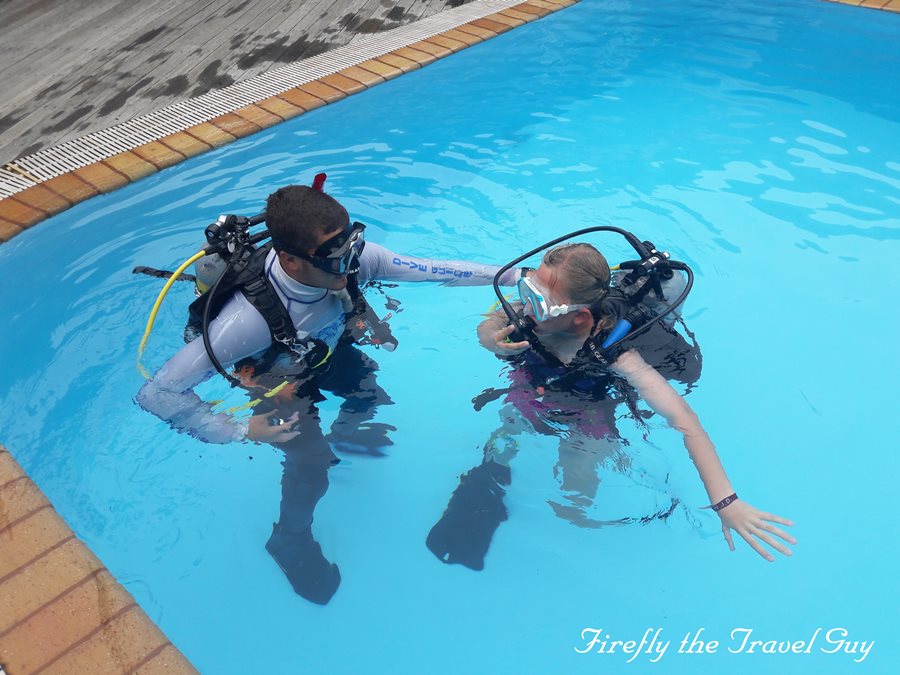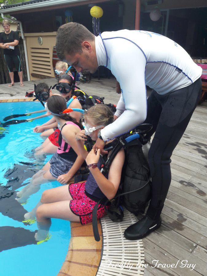 The kids had a swim in the dive pool while waiting for everybody to arrive before the full safety briefing by one of ProDive’s qualified dive masters.