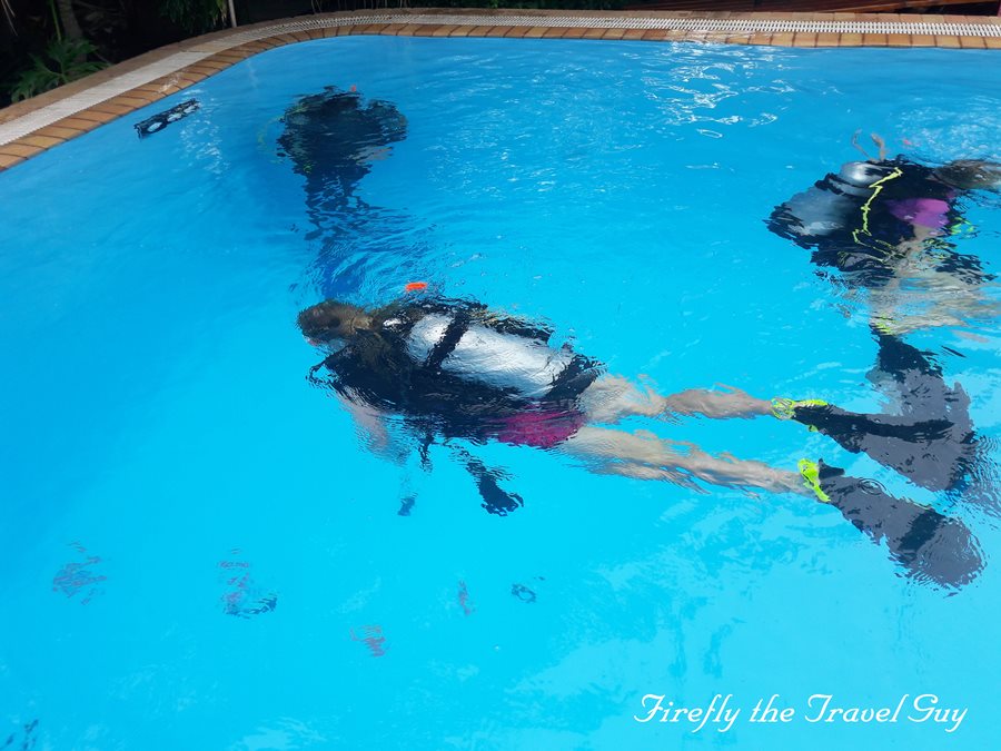 … while Miggie’s mind told her she has to come up every time she wanted to breathe in. The dive master brought her back to the shallow side and spent a few moments with her to put her mind at ease and to help her get used to breathing underwater.