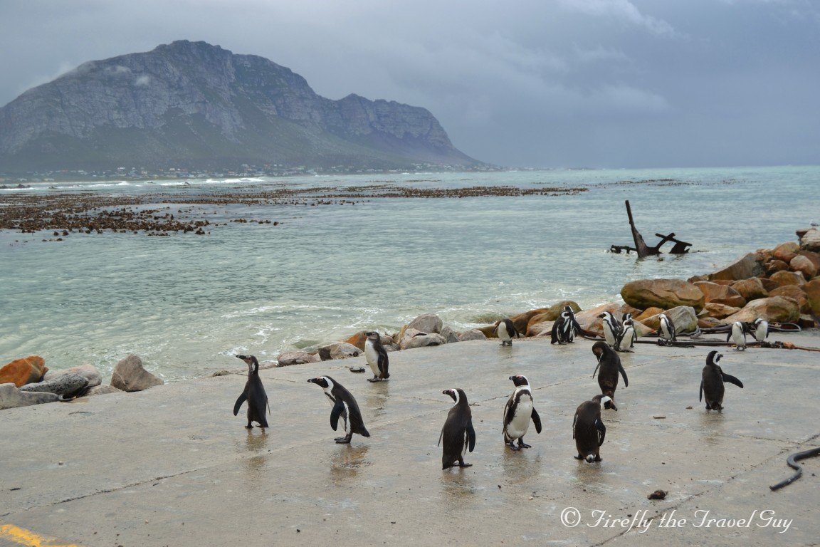 Chapman’s Peak may be rated as one of the ten most scenic roads in the world, but I’ve got to be honest, the R44 from Gordon’s Bay to Rooi-Els doesn’t have to stand back one step. It really is a stunning drive along the coastline even with rain in your face. Ordinarily, this specific tour would go on to Kleinmond but once we got to the penguins at Stoney Point it started coming down a bit so we settled for hot chocolates in the coffee shop before backtracking to Pringle Bay for a fish and chips lunch by a fireplace. Did we mind being slightly wet (because the layers kept most of the water out)? Hell no. We were having too good a time.