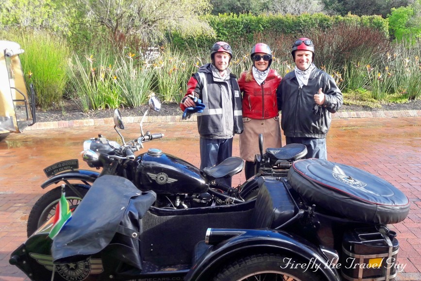 One of my South African travel bucket list items I got to tick off during 2017 was going on a motorcycle sidecar tour in the Cape. A visit to a conference in Stellenbosch had the opportunity arise to join a tour from Spier via Strand and Gordon’s Bay as far as the Stoney Point penguin colony in Betty’s Bay and back and I just could not say no come rain or shine. Which turned out to be the case. Literally.