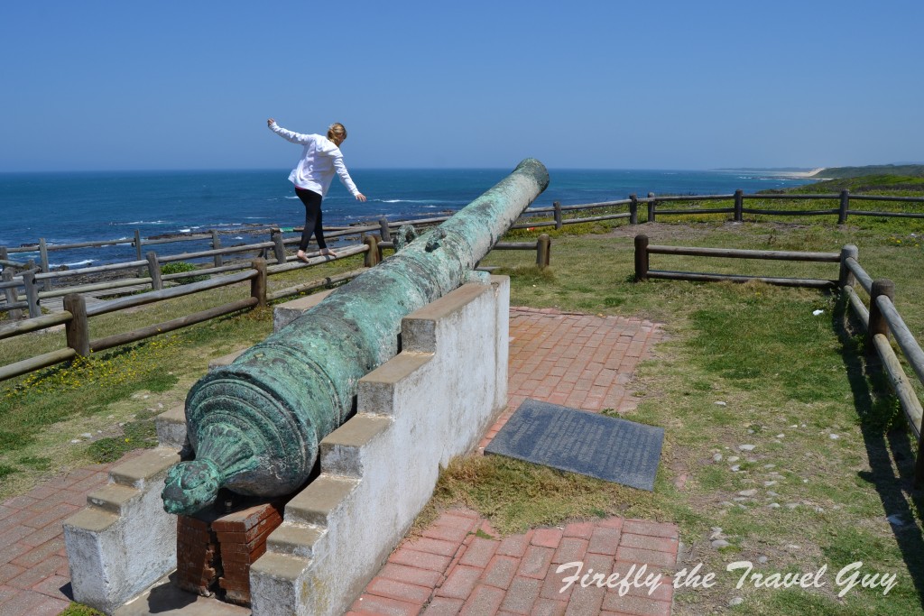 One of the original Sacramento guns stand at the west side of Schoenmakerskop pointing in the direction of where she met her fate.