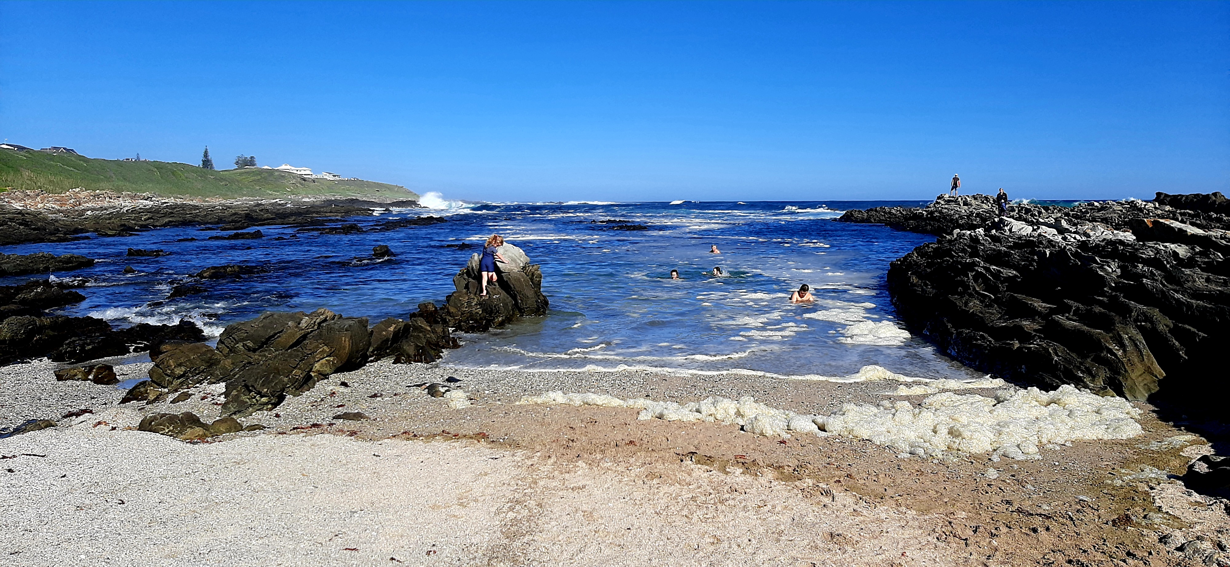 For the last week one waking up out of a Rip von Winkel sleep could easily have thought it was summer here in Port Elizabeth. It’s been hot and humid. We headed down to Schoenies this afternoon and rather than just getting our feet wet, we went for a swim at the Tanks. First swim of the season.