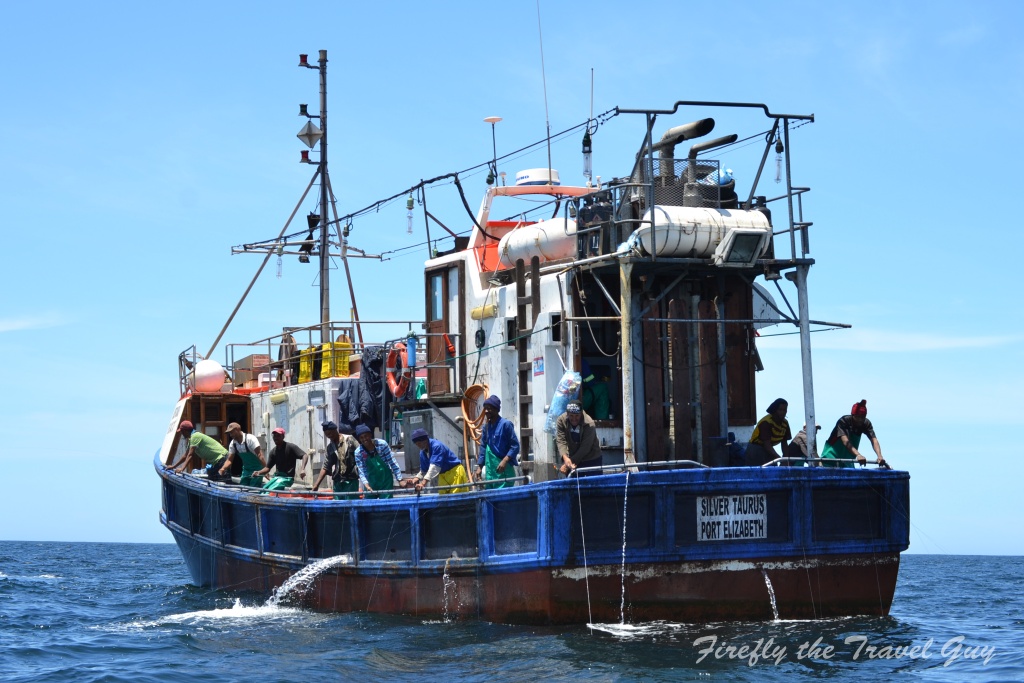 Fishing boats out in Algoa Bay and St Francis Bay are regular sights to residents and visitors of Port Elizabeth, Jeffrey’s Bay and St Francis. These boats can often be seen taking shelter in the bays when bad weather is forecasted and at night it looks like a town out on the water with all the bright lights out there. The majority of these boats are chokka boats with the region being home to the South African chokka industry.