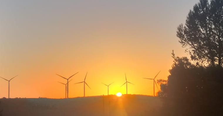 A couple of days ago we joined a group of fellow Geocachers to solve a puzzle on the Blue Horizon Bay road. While we were busy figuring out the problem, my daughter Miggie made herself comfortable in a camp chair to watch the sunset. She snapped this picture of the sun setting behind the windfarm.