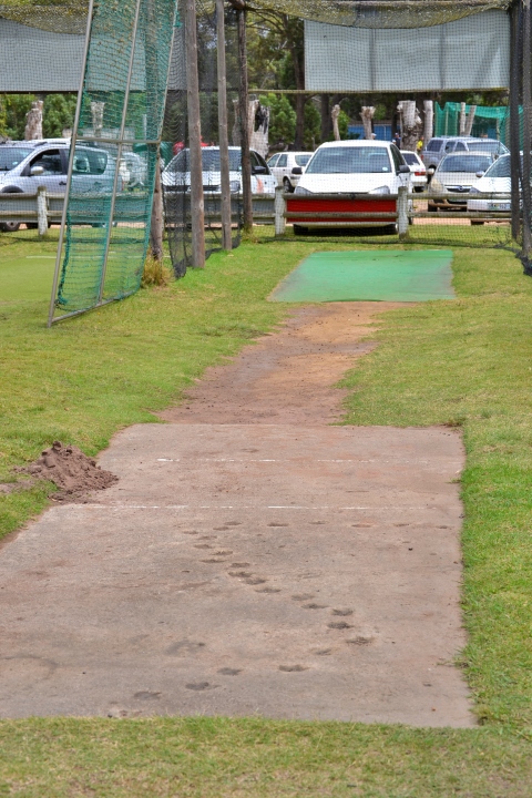 Last week while Miggie was playing cricket at Heatherbank Cricket Club / Youth Cricket Academy in Walmer, I strolled around the field to get some pics of her batting. Passing the nets I noticed foot prints in the cement and had a closer look.